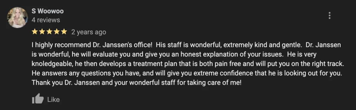 I have almost 40 years experience with patients; big and tall, young and old, fragile and apprehensive. It’s my desire to make your treatment comfortable and effective.
